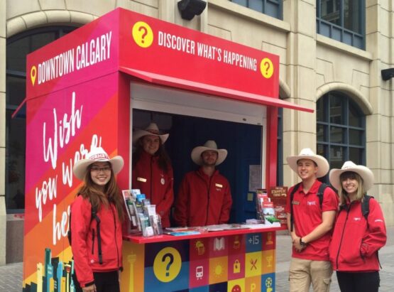 This outdoor information kiosk was custom-designed for Downtown Calgary to serve as a mobile platform for promotions, tourist details, and event information. Wheeled into public spaces, the kiosk provided a secure, branded point of contact for engaging passersby and distributing materials.