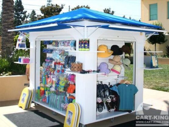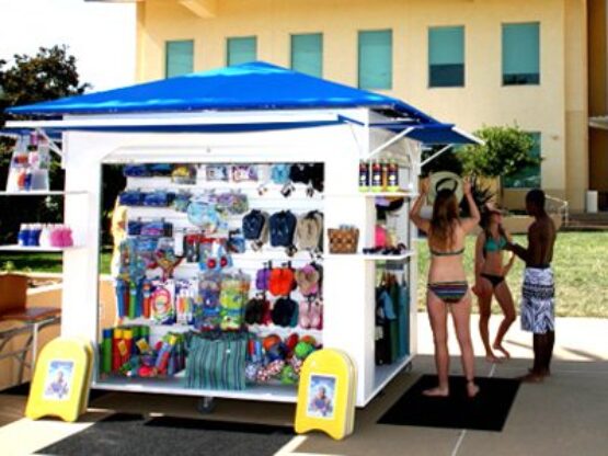 We now offer prefabricated mobile retail display kiosks ready for purchase and branding. If you are planning a poolside or outdoor retail setup, this archived project shows what is possible.